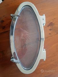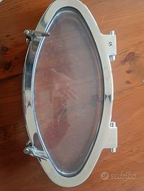 Oblò ellittico marca SCM nuovo mai montato causa vendita barca, ce ancora nel vetro la pellicola protettiva, in una foto sono descritte le misure quasi precise, millimetro in più millimetro in meno, per qualsiasi info contattatemi pure. PS eventuale spedizione da conteggiare a parte.