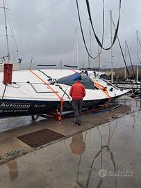 PLURIDECORATA, PLURIVINCITRICE, IMBATTIBILE, SCAFO IN COMPOSITO, CHIGLIA BASCULANTE ( CANTING KEEL ), ALBERO PASSANTE IN CARBONIO, CROCETTE IN LINEA, SARTIAME IN TONDINO, SARTIE VOLANTI, PATERAZZO REGOLABILE, BOROSE ALL'ALBERO, BOROSE RINVIATE IN POZZETTO, 3 RANDE STECCATE, GENOA AVVOLGIBILE, 3 FIOCCHI, 2 GENNAKER, CODE 0, BOMPRESSO, STRUMENTAZIONE COMPLETA, MOTORE NANNI CUBOTA , INVASO X TRASPORTO SU BILICO...........INVIO SCHEDA COMPLETA SU RICHIESTA...............