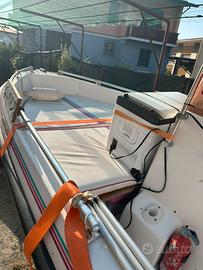 Vendesi hellas paradise, barca chigliata molto comoda e stabile, completa di tendalino, cuscinetta, ecoscandaglio, scaletta, motorizzata con Tohatsu 40 cavalli ( guida senza patente).