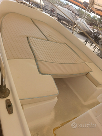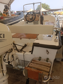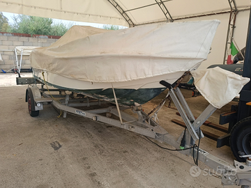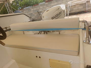 In vendita barca open 4.50mt con cuscineria completa, luci di via, luce 360', pompa di sentina, pannello interruttori, impianto batteria con stacca batteria, impianto doccia, serbatoio carburante portatile 30lt con filtro decantatore, scaletta di risalita, spiaggette di poppa, ampi gavoni di prua e poppa, tendalino in alluminio, GPS/Eco Garmin