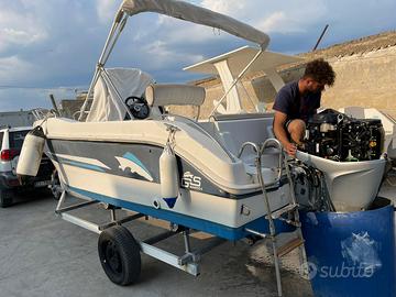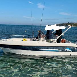 Vendesi open 5,5 metri con motore honda con circa 600 ore tapezzeria e tendalino rifatti 2023, ponpa sentina, presa per canna elettrica, doppia batteria con interruttore, 2 porta canne,