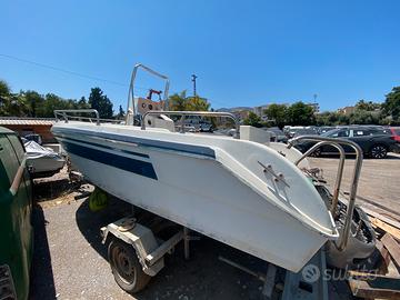 Per mancanza di tempo, vendo per immediato realizzo, barca open 5,5 metri in vetroresina da restaurare comprensiva di carrello Todaro omologato. Lo scafo è in buone condizioni e non presenta tracce di osmosi, ottima come progetto invernale da potersi godere la prossima stagione.