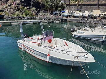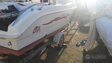 Vendo a gran malincuore bellissima open 550 cantieri GS tenuta un ottimo stato per necessità familiari. Barca super confortevole con ampi spazi a bordo. Unica nel suo genere in quanto sia il serbatoio acqua da 80lt sia quello carburante 100lt, si trovano in un gavone al di sotto della consolle,il chè da la possibilità di avere i grandi gavoni di prua e poppa completamente liberi,oltre a garantire un bilanciamento perfetto della barca in navigazione. Roll bar in acciaio con ampio tendalino, autoclave doccetta,stereo, timoneria idraulica ecc ecc. Cuscineria amovibile NUOVA, quella fissa da rivedere in alcuni punti. Motore Yamaha 40 70 immacolato,unico proprietario , manutenzione in casa Yamaha,con 170 ore. Praticamente in rodaggio,ha visto più il garage che il mare. Vendo anche senza motore