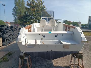 barca ideale per la pesca,alta di sponda, cuscineria nuova, 2 vasche x il vivo, carena portata a zero e fatto trattamento anti osmosi compreso lucidatura vendo