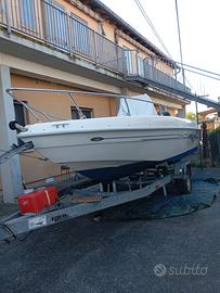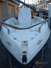 Vendo open di circa 6 metri completa di cuscineria, tendalino, copri consolle, copertura estiva, e invernale, gps+ eco a colori, radio fm, parabordi, 2 batterie, doccetta con relativo serbatoio, numero, 2 serbatoi benzina amovibili , totale 50 litri. Motore Mercury 100 HP modello CT con 200 ore 4 tempi tagliando appena fatto, come nuovo. Qualsiasi prova anche con vostro meccanico di fiducia, barca appena lucidata e fatta antivegetativa come da foto. Il carrello non è in vendita grazie. Per info scrivetemi lasciando il vostro numero e sarete richiamati.