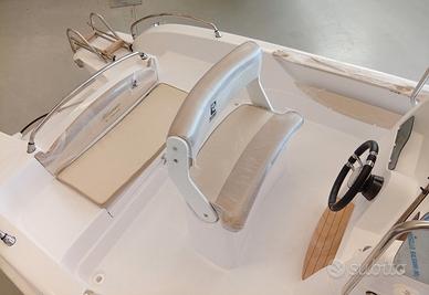 Accessori forniti: Pompa di sentina, Scaletta, Luci di navigazione, Cuscineria completa, Impianto elettrico, Corrimano Inox, Gavoni, Tasche laterali, Musone prua, Timoneria, Monocavo, Serbatoio carburante, Serbatoio acqua con doccetta, Batteria e stacca batteria.