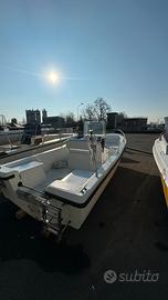 La barca è lunga 5.5 metri, è completa di timoneria a cavo, cuscineria, e tendalino parasole.