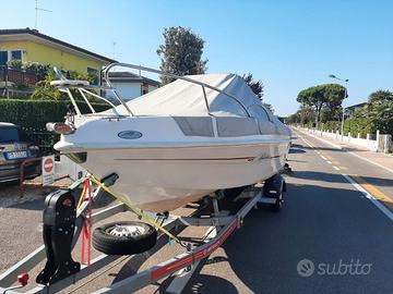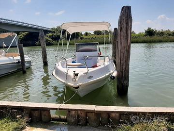 vendo per inutilizzo Open bluline 19 del 2015 con motore Evinrude e tec 2009 con 548 ore, 2 strumenti i command elettronici, ecoscandaglio/navigatore Garmin, cuscineria sempre usata con copricuscini su misura in spugna, tendalino, telo su misura impermeabile con bottoni divisibile in due sezioni, altro telo impermeabile con tessuto tipo camion a copertura totale barca e motore, teli singoli per consolle e panchetta, carrello Satellite del 2018 con passerella, barca sempra varo e alaggio in giornata quasi sempre acqua dolce. sempre rimessata al coperto estate e inverno. fatto sempre invernaggio del motore, trim revisionato. Veramente bella e in ordine