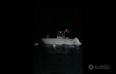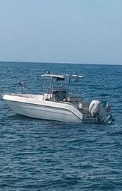 Mano' Open Fisher 7,50 trasformata completamente per la pesca d' altura completa di tutto con walk around in alluminio con tubolari richiudibile e consolle , accessori per la pesca prese mulinelli elettrici , postazione da combattimento a prua , doppi serbatoi benzina ecc , motore fuoribordo Evinrud 200 hp ho etec gambo lungo , con 490 ore di navigazione attualmente si trova a secco in cantiere a Reggio Calabria con possibilità di vederla, solo persone interessate . Si vende con rimessaggio eseguito.