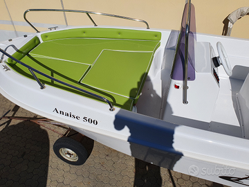 Open marino anaise 500 Barca autosvuotante Mt 5 larghezza mt 185 peso 350kg Barca con impianto elletrico scala bagno cuscineria completa 12volt doccia luci di via luce 360 pompa sentina Tendalino Disponibili altre colorazioni Prezzo di listino ?12.960,00 + iva Scontato ?10.900,00 ivata Possibilità di altri accessori su richiesta Possibilità di motore 2 o 4 tempi nuovo o usato Possibilità di trasporto in tutta Italia Possibilità di posto barca Per altre info chiamare il Gianluca