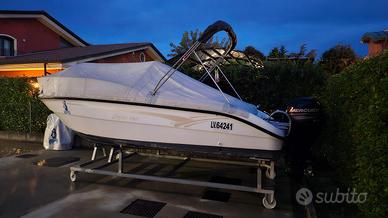 Dati principali Cantiere: Orizzonti Modello: Syros 190 Anno costruzione: 2019 Lunghezza: 5,70 m Larghezza: 2,18 m Motorizzazione: Mercury F 40/60 PRO Ore motore: 400 Portata persone: 7 Barca in perfette condizioni Tagliandi motore regolarmente eseguiti da centro assistenza autorizzato Mercury Trattamento antivegetativa eseguito tutti gli anni Tappezzeria originale completa Dotazioni di bordo entro 3 miglia Doppia batteria con commutatore e staccabatterie GPS/ecoscandaglio RAYMARINE DRAGONFLY 5 Radio VHF Standard Horizon Eclipse Pompa elettrica di sentina Stereo BOSS MGR350B a 2 altoparlanti bluetooth e presa USB Orologio nautico analogico Bussola Estintore a polvere 1 kg Cassetta pronto soccorso Serbatoio carburante 70 l Serbatoio acqua 42 l Ancora con catena e cima Tendalino acciaio INOX completo di prolunghe ombreggianti laterali, prua e poppa realizzate artigianalmente Telo copertura totale Ormeggiato periodo maggio - settembre darsena Jesolo Rimessaggio invernale in piazzale Visibile presso abitazione Vendo per passaggio categoria