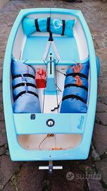 Barca ferma in garage dal 2019, lucidata. Scafo appendici e carrello in perfette condizioni, alberatura vele e sacca deriva buone condizioni, telo di copertura da rifare.