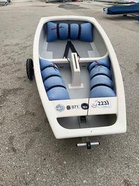 Barca in buone condizioni, antisdrucciolo appena rifatto, Scotta con 4 giro rastremata, timone e deriva allenamento e DSK regata,alberatura Optimast MKIII, Due vele Olimpic M (una da regata e una da allenamento) una Vela One da regata, telo sotto recente, carrello, blocca albero e tutti i vari accessori. Visibile Marina Dorica Ancona