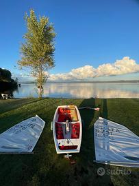 Dotata di telo sopra, telo sotto, varie sacche per le vele e una per le alberature + una per deriva e timone