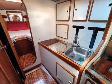 Orca 43 con motore nuovo (betamarine 29 kw), batterie nuove con ripartitore vitron (200 amp linea frigo + 180 amp servizi + 100 amp motore), pilota automatico, contametri digitale catena, salpancore 1000 watt (comandabile wireless, da pozzetto e con telecomando a prua), 75 mt catena da 10, pilota automatico, cucina 3 fuochi basculante inox con forno. Numero max di posti letto 11 (3 cabine matrim. + un divano letto in dinette + 1 letto singolo a castello alzando lo schienale del divano + 1 letto matrimoniale abbassando il tavolo + 1 letto singolo a castello alzando lo schienale del divano). Tavolo esterno + cagnaro. Antiscivolo esterno, teak pozzetto. Vela di prua Yankee (praticamente nuovo con calza di protezione e rollafiocco) - Randa steccata al 60% - stralletto per una eventuale trinchetta a garrocci. La barca è dotata di volanti regolabili. 6 winch in pozzetto, 1 winch su base albero. Barca riverniciata 4 anni fà. No osmosi.