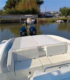 Vendo a malincuore Panamera P90 del 2019, tenuto in modo maniacale e appena refittato totalmente. Il battello è praticamente pari al nuovo, motorizzato con coppia di Suzuki 175cv con sole 310 ore di moto. I motori sono sempre stati seguiti da officina autorizzata, ho appena fatto il tagliando completo (marzo 2026) e cambio olio. Non c'è un euro da spendere, la barca è pronta per andare in acqua (manca solo l'antivegetativa). Quest'anno ho fatto diversi lavori per averla perfetta: • Lucidatura completa vetroresina e acciai • Verniciatura musone e plancette • Trattamento completo tubolari e cuscineria (antimuffa) • Volante nuovo, cavi manette e revisione trim • Refit impianto idraulico (bagno, doccette e valvole) Dentro è comodissima, ha la cabina alta 1,80m con bagno separato e WC elettrico. Fuori ha il layout sport con prendisole enorme a poppa, frigo, fornelli e lavello sotto la seduta di guida. Nel prezzo includo veramente tutto quello che ho a bordo: verricello, VHF, ghiacciaia, dotazioni di sicurezza complete con razzi nuovi (scadenza 2029), gonfiatori, parabordi e accessori vari. Richiesta: 68.000€ La barca è visibile a Latina Per foto o altre info scrivetemi pure in privato o chiamatemi al 3923213999 Antonello