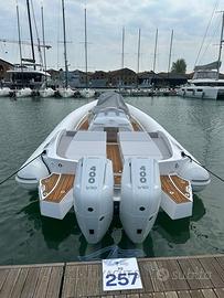 Spettacolare Gommone Panamera PY 100 anno 2025 con 2 Mercury 400 HP 40 ore moto - velocità 40 nodi. SPORTIVO ACCATTIVANTE UNICO. La straordinaria carena rappresenta l'unione armoniosa di design aerodinamico, tecnologia idrodinamica avanzata e materiali di alta qualità; L'eccezionale spazio sottocoperta con un'altezza di 2 mt è configurato nel seguente modo: sono presenti due letti singoli traformabili in letto matrimoniale, e vi è un bagno separato, completo di lavandino, doccia e wc; come optionals rivestimento in teak, gps 12'', trasduttore, caricabatteria e inverter, elica di prua, prese usb, luci di cortesia pozzetto, luci sub, alza tavolo elettrico, alzata portellone accesso cabina elettroattuato e tantissimi gavoni spaziosi. Doppio tendalino arabo a prua e poppa. Permuto anche con Porsche o Lamborghini Huracan GT3