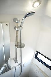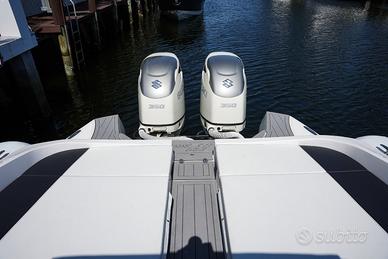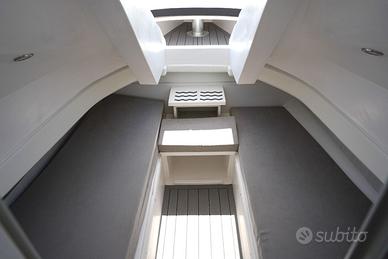 Ancora con catena zincata, Autoclave completa, Bitte a scomparsa n.2, Bitte normali n.4, Bussola alta velocità, Cuscineria personalizzabile, Doccia esterna a poppa, Frigorifero a cassetto da 70 l, Impianto stereo con 4 casse, Indicatore livello acqua, Indicatore livello carburante, Lavandino con rubinetto, Luci di fonda a 360°, Luci di navigazione, Oblò laterali n.4, Pannello interruttori, Parabrezza in plexiglass, Piano cottura a gas, Pistoni a gas alza tutti i portelli, Pompa di sentina a immersione, Pompa di sentina a paratia, Prese USB esterne, Quadro impianto elettrico, Scaletta di risalita a scomparsa, Staccabatteria n.4, Tendalino posteriore e anteriore, Timoneria idraulica, Tromba a incasso, Tubolari e bottazzo personalizzabili, Verricello smart plus 1000W, Volante. Cabina Cuscineria completa interna cabina, Doppio letto singolo, Luci led cabina, Pistoni elettrici alza porta cabina n.2, Toilette interna con wc elettrico, lavello e doccia.