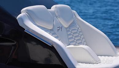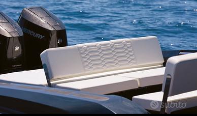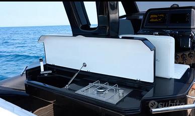 T-TOP, Ancora con catena zincata, Autoclave completa, Bitte a scomparsa n.2, Bitte normali n.2, Bussola alta velocità, Contacatena ad incasso, Cuscineria personalizzabile, Doccia esterna a poppa, Frigorifero a cassetto, Impianto stereo con 4 casse, Indicatore livello acqua, Indicatore livello carburante, Lavandino con rubinetto, Luci di fonda a 360° acciaio inox, Luci di navigazione, Oblò laterali, Pannello interruttori, Passauomo basso profilo, Parabrezza in plexiglass, Piano cottura a gas, Pistoni a gas alza portelli, Pompe di sentina n.2, Prese USB esterne, Quadro impianto elettrico, Scaletta di risalita a scomparsa, Staccabatteria, Tavolo di poppa elettrico, Tendalino posteriore, Timoneria idraulica, Tromba a incasso, Tubolari e bottazzo personalizzabili, Verricello smart plus 1000W, Volante. Cabina Cuscineria completa interna cabina, Posti letto 4, Luci led cabina, Toilette interna con wc elettrico, lavello e doccia.