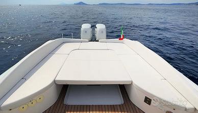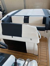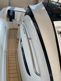 Ancora con catena zincata, Autoclave completa, Bitte n.2, Bitte n.2 a scomparsa, Bussola alta velocità, Cuscineria personalizzabile, Doccia esterna a poppa, Impianto elettrico, Indicatore livello carburante, Lavandino con rubinetto, Luci di fonda a 360°, Luci di navigazione, Pannello interruttori, Parabrezza in plexiglass, Piano cottura a gas, Pistoni a gas alza portello di prua, Pompa di sentina a immersione, Scaletta di risalita a scomparsa, Staccabatteria n.2, Tavolo di poppa convertibile a prendisole (solo versione open), Tendalino posteriore, Tromba a incasso, Tubolari e bottazzo personalizzabili, Verricello smart plus 500W, Volante. Cabina Lavello bagno in cristallo cm 36, Luci led in cabina, WC elettrico e doccia.