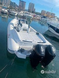 CARENA BIANCA E COPERTA BIANCA;COLORE DEL TUBOLARE E BOTTAZZO A SCELTA DEL CLIENTE;CUSCINERIA CELLULA CHIUSA A SCELTA DEL CLIENTE ,VERRICELLO ELETTRICO DA 500W DI SERIE,ANCORA E CATENA ZINCATA .AUTOCLAVE,BUSSOLA,DOCCIA ESTERNA,LUCI DI NAVIGAZIONE,2 OBLO' OVALI BAGNO,PARABREZZA,QUADRO ELETTRICO GENERALE,SCALETTA DI RISALITA A SCOMPARSA,SERBATOIO ACQUA DA 100LT,SERBATOIO IN ACCIAIO CARB. DA 350LT,TAVOLO ESTERNO CON PIEDE SMONTABILE,TROMBA,VOLANTE,INDICATORE CARBURANTE,FORNELLO 1 FUOCO,LAVANDINO SOTTO SEDUTA,POMPA DI SENTINA,4 BITTE NORMALI,STACCABATTERIA,PISTONI A GAS ALZA PORTELLO DELLA CABINA,TEAK,TENDALINO POSTERIORE ,RADIO CON STEREO BLUETHOOT CON 2 CASSE,CABINA CON LAVELLO ,WC ELETTRICO E DOCCIA,LUCI DI ILLUMINAZIONE CABINA