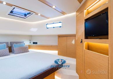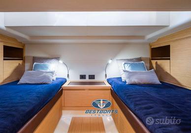 Gli interni, curati con stile contemporaneo, includono una cucina funzionale, un bagno completo, una luminosa cabina armatoriale e una cabina ospiti spesso configurata con letti singoli convertibili.