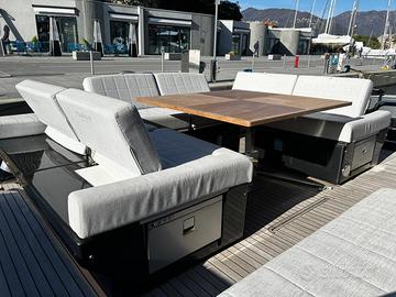 NOTE SUL PREZZO IVA non Pagata DATI PRINCIPALI Cantiere: Pardo Yachts Modello: GT 52 Anno Costruzione: 2024 Lunghezza: 14,95 m Condizione: usato Stato conservativo: eccellente Tipologia: Hard Top Codice: 893037 Imbarcazione mantenuta in eccellenti condizioni di manutenzione general. Ottimamente accessoriata con joystick di manovra, stabilizzatore giroscopico, generatore, aria condizionata, domotica, colorizzazione speciale. Vendita per passaggio ad imbarcazione di dimensioni maggiori. MOTORI Potenza: 2 x 600 Hp Modello: Volvo Penta IPS 800 Tipologia: Entro Bordo Diesel Trasmissione: IPS Anno: 2024 Ore moto: 384 ABITABILITÀ Numero cabine: 3 Numero bagni: 2 Posti letto cabina: 6 Posti letto totali: 6 Posti letto marinai: 1 DATI TECNICI Lunghezza fuori tutto: 16,58 m Larghezza: 4,96 m Immersione: 1,32 m Dislocamento: 24.000 Kg Persone trasportabili: 16 Velocità massima: 32 Kn Velocità di crociera: 26 Kn Serbatoio carburante: 2.000 l Serbatoio acqua: 600 l Bandiera: Isole Vergini Britanniche Impianto elettrico: 12V, 220V Generatori: 1 x 11 kw - kohler STRUMENTAZIONE ELETTRONICA DI NAVIGAZIONE AIS, Angolo barra, Bussola, Contamiglia, Ecoscandaglio, GPS, Joystick, Log, Pilota automatico, 2 Plotter, Radar, Radio VHF. ALLESTIMENTO TECNICO E DI COPERTA Allarme fumo/gas, Allarme motore, Allarme sentina, Alternatore, Ancora, Auto Dynamic Trim Interceptor, Autoclave, Batterie, Caricabatterie, Cavo corrente di banchina, Doccia esterna, Elica di prua - bow thruster, Flap elettrici, Hard top, Luci di cortesia, 8 Parabordi, Passerella (idraulica a scomparsa), Piattaforma (idraulica affondabile), Pompa di sentina automatica, Pompa di sentina elettrica, Pompa di sentina manuale, Ponte in teak, Porta ingresso, Pozzetto Teak, Presa 220V banchina, Salpa Ancore Elettrico, Scaletta da bagno, Stabilizzatori (giroscopico), Tavolo pozzetto (elettrio), Tromba. DOTAZIONI DI SICUREZZA Dotazioni di sicurezza entro 50 miglia. INTRATTEN