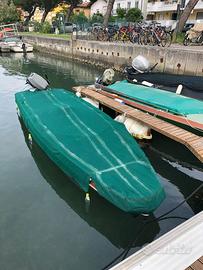 Patanella di Angelo Palatron, scafo in tavole resinate, tenuta in modo maniacale, bottazzo nuovo 2024, con forcole, remi, telo completo, cuscini. Motore Evinrude 521 XP con elica acciaio e numerosi ricambi (centralina, bobine, pompe,ecc.). Con Evinrude 521 "normale" 200€ in meno. NO PERDITEMPO. #cofano #cacciapesca