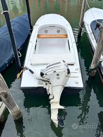 Vendo per inutilizzo barca tipo patanella completa dei seguenti accessori: tiemo dritto, ancora, parabordi, cuscino da poppe, panchina in legno, luci di via, luci interne e clacson. Nel prezzo è compreso motore Johnson 15 hp 4 tempi, gambo corto con accensione elettrica. Purtroppo al momento lo stesso presenta qualche problema al carburatore ma potrebbe sia essere riparato con un po' di tempo e voglia oppure può tornare comodo per la rivendita dei singoli componenti. Disponibilità a trattare il prezzo.