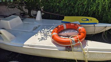 Pattino da mare in resina bianco completo di remi, scaletta retraibile, ciambella di salvataggio e carrello per il trasporto. Buone condizioni