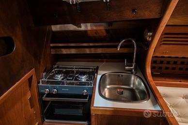 CUCINA ED ELETTRODOMESTICI Fornello (a gas due fuochi nuovo), Frigorifero interno. TAPPEZZERIE Cuscineria completa (interna nuova). VELE Avvolgi Fiocco, Tenditore strallo di poppa, Trasto randa.