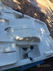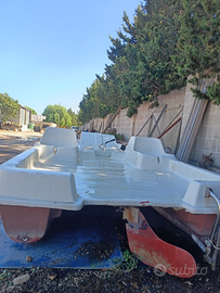 Pedalò in vetroresina in ottime condizioni, necessario soltanto qualche piccolo ritocco nella parte superiore. 4 posti, completo di scaletta posteriore.