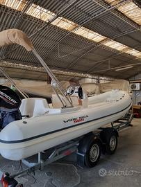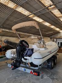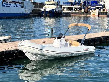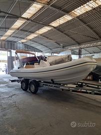 anno 2022 maggio - modello wire sea 5,85 ovvero 6,00 metri fuoritutto, tubolari bianchi e rivestimenti in pelle beige personalizzati originali e pedane in teak, con plance di poppa integrate, scaletta a scomparsa in acciaio inox, batteria nuova - anno settembre 2023 con staccabatteria, motore nuovo ed ancora in garanzia "40/70 modello Mercury PRO" anno 2022 con 35/40 ore di moto con manetta elettronica e con assicurazione pagata fino a luglio 2025, trim elettrico, sterzo in acciaio, tromba, timoneria idraulica, impianto stereo "Boss marine" con casse marine, Eco Gps Garmin, serbatoio benzina con galleggiante con rabbocco esterno,