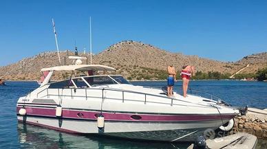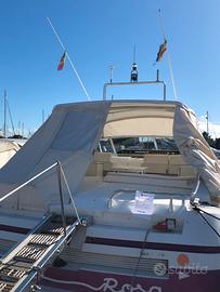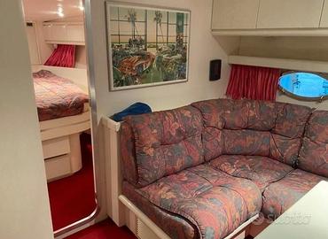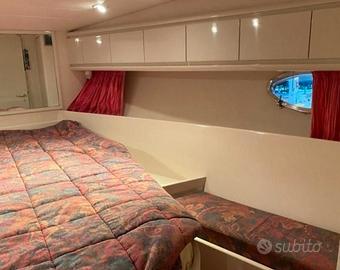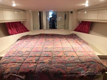 costruzione: 1992 Lunghezza mt.: 12,00 Larghezza mt.: 4,08 Motorizzazione: CAT 2 x 425 hp EB DIESEL (1300 ore circa) 2 cabine, 1 cabina poppa, 2 bagni + wc manuale, impianto acqua calda, serbatoio acqua 400 lt, frigo, piano cottura in ceramica, microonde, stabilizzatori d'assetto, impianto combinato aria condizionata/riscaldamento, passerella idraulica, bimini-top, impianto per il lavaggio del ponte, revisione motori 2021, generatore 5,5 Kw revisionato 2020, gps/eco 2021.