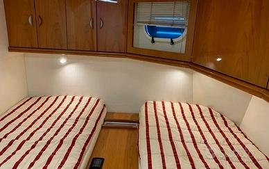 PERSHING 45 Hard-Top del 2003 Motori: 2 x MAN 2876 LE404 – 630 CV (463 kW) con 1100 ore Lunghezza: 14,2m - Larghezza: 4,04m Costruttore italiano (Cantieri Navali dell’Adriatico) In ottime condizioni, sia estetiche (legno, cuscineria, interni ecc.) che meccaniche (manutenzione regolare) Capacità 15 persone – 3 cabine (matrimoniale / twin) – 6 posti letto ESTERNO Hard-top elettrico fatto su misura Ampia cabina di pilotaggio: tavolo di pilotaggio, materassi, luci, doccetta, altoparlante, parabrezza Doccetta Passerella Panchine esterne - Grande cassettone contenitore Spiaggetta a prua, pavimento in legno teck Scaletta da bagno Prendisole a poppa e a prua Bimini – Tendalini Elica di prua COMFORT Riscaldamento/climatizzatore WC elettrico, boiler Cucina con fuochi a gas, fornello, lavello, forno a microonde, frigorifero, Luci LED interne/esterne Televisore, Antenne TV/satellite ELETTRICITA Batterie motore, batterie di servizio - Caricabatterie Circuiti elettrici 220V e 12V, con adattatore Generatore Presa da banchina NAVIGAZIONE Sistema centrale navigazione, joystick Solcometro, GPS, ecoscandaglio VHF Pilota automatico Pompa di sentina Ancora – Salpa ancora elettrico Trasmissione idraulica Dotazioni di sicurezza (incl. Per navigazione in alto mare) Motore ausiliario Zattera di salvataggio Visibile Sud Francia Per informazioni e ulteriori foto, contattare ROBERTO CARDEO al n. EBC YACHT Con noi puoi comprare o vendere la tua barca in modo semplice e affidabile. Offriamo servizi completi: trasporti marittimi, assicurazioni, perizie, finanziamenti e molto altro. Visita il nostro sito!