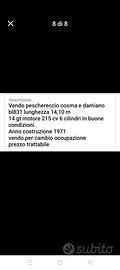 Vendo peschereccio Cosma e Damiano bl831 lunghezza 14.10 m 14 gt motore 215 cavalli 6 cilindri. Anno costruzione 1971. Chiamare al numero 3894865600 Castellano Giuseppe Oppure al numero 3297872749 Prezzo trattabile
