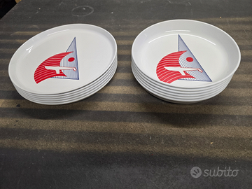 Servizio da 6 con relativi 6 piatti fondi e 6 lisci in melamina. Marca Pink Crown