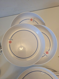 Tutto con marchio JEANNEAU, set per sei persone piatti e scodelle in melanina, posate in acciaio nautico (molto pesante e non si ossida). Usato ma in buono stato, purtroppo manca un coltello. MA AVETE NOTATO IL LOGO SU OGNI SINGOLA POSATA!!!