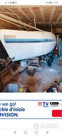 Barca a vela marca Cecco di 5.30 MT. Con piccola cabina di prua completa di motore vele deriva e di carrello vendo :.la barca 1000 euro il carrello 1000 euro il motore 300 euro. Tel 3336633292 Maurizio