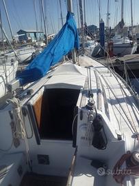 Pierrot 925 completo di vele con rollafiocco, spinnaker con tangone e gennaker praticamente nuovi. 2 cuccette cabina prua, dimette trasformabile in matrimoniale, cuccetta o divano sulla dritta. bagno con doccia e Wc marino. Cucina basculante con lavello, frigo ecc.. Motore Ruggerini 12 cv Diesel. Pilota automatico.