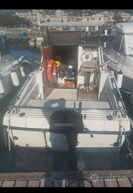 Vendo barca di 6mt x 2.20 gabinata con motore entrobordo 40cv per passaggio a categoria superiore...la barca è dotata di 6 portacanne,luci pozzetto,bussola,estintore,salvagente anulare,luci di via,ecoscandaglio lowrance 9pollici con due sonde,motore ausiliario mercuri4cv per la trainetta,autoradio marino nuovo,il motore di prua non è compreso nella vendita.ottima barca sia per le gite che per la pesca ...affidabile stupenda e non consuma niente...ti scordi di fare gasolio...la barca è planante ma con il motore da 40cv non riesce...ma la guidi senza patente.la barca è in acqua a livorno...no posto barca.
