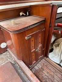 Nel 2015 sono stati fatti tutti gli interventi di ristrutturazione per un valore di 23000 Euro. Questi comprendevano anche la sostituzione del motore istallando un Lombardini 40 Cv che attualmente ha circa 50 ore di navigazione. Poi la barca è stata messa sul carrello fino ad oggi. Bisogna ripulirla, trattare i legni, riverniciare le parti scrostate, revisionare il motore. Ci sono cuscini in pelle per il pozzetto e la tuga, i cuscini all'interno sono in ottimo stato, dispone di una cucina esterna e un wc interno. Per qualsiasi informazione non esitare a contattarmi. Se non rispondo mandate un messaggio che verrete richiamati