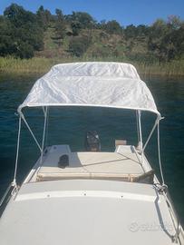 Barca a motore (Mercury 40 cavalli 4 tempi appena revisionato, unico ammesso sul lago di Bolsena) cabinato (letto matrimoniale). Completa di cuscini prendisole, giubbotti salvagente, tendalino parasole, cagnaro di copertura impermeabile per stazionamento alla boa, radio am/fm, serbatoio benzina 22 litri, ancora. Pronta per una gita..