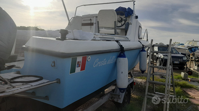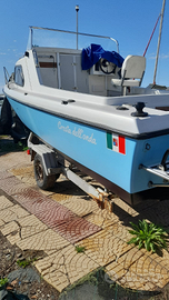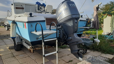 semicabinato lunghezza 7.50mt, motore Yamaha 115 4T, doppio serbatoio carburante da 58lt cad, doppia batteria 100H, impianto stereo, interno cabina con wc chimico è lavandino, cuscineria nuova , tendalino, doccetta esterna, salpa ancora elettrico, carrello kg 1300 completo di terminale con argano elettrico è solo per alaggio ... se siete interessati contattatemi al 3293276152.....