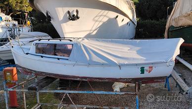 Pilotina lunga 5 metri con piccola cabina e gavone ancora.