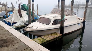 cranchi C6 motore Volvo AQ 165 benzina nonostante l'età ancora ben funzionante a bisogno solamente di revisionare la pompa dell'acqua, scafo buono ha bisogno solamente di ripristinare a prua sopra il bottazzo causa maltempo che è andata a sbattere contro la bricola, barca ormeggiata a Chioggia prezzo 1500 info 34592 77 519