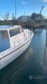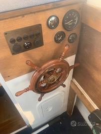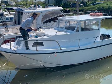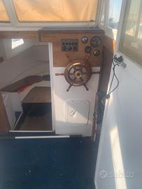 pilotina dislocante misure circa 7mt per 2.50 conaplastic murena senza motore in origine era dislocante con la linea d'asse (albero ancora presente) lo specchio di poppa e stato rinforzato per ospitare un fuoribordo max 35 cv. la barca non è planante. la barca è stata modificata e cabinata con compensato Marino impianto elettrico nuovo Luci di navigazione Stacca batteria Illuminazione interna Impianto 230v da banchina cuscineria nuova carena sana controllata e rifatta a maggio 2025 con antivegetativa impianto acqua dolce frigo wc chimico la barca viene venduta senza il motore in quanto quello installato e troppo pesante e potente e non la fa navigare in maniera corretta necessita di un 30-35cv ultimo prezzo Visibile a Portogaribaldi (FE)