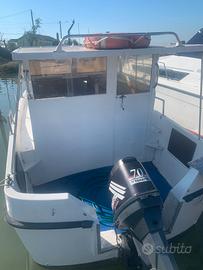 lo specchio di poppa e stato rinforzato per ospitare un fuoribordo max 35 cv. la barca non è planante. la barca è stata modificata e cabianata con compensato Marino