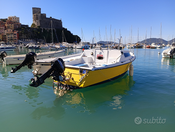 Barca francese gabinata di metratura 5.25 Equipaggiato con fuoribordo Mercury 2 tempi. 10/15 CV