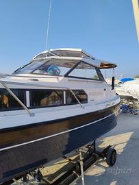 Vendiamo barca di famiglia, per passaggio ad imbarcazione piu grande. Cantieri joda, svezia mod 8100 tc (doppia cabina) , anno 1990, motore volvo penta 130 cv, linea d’asse con tenuta meccanica del giunto( raffinatezza su queste dimensioni). Misure 8,90x3.00 fuori tutta, centrobarca comoda dinette con hard top , 8 sedute, cucina con lavello, posto pilota e copilota, tettucci apribili, cabina di poppa con due letti singoli, cabina di prua con letto matrimoniale, cuccetta singola, dinette con 6 posti trasformabile in matrimoniale, locale wc, con wc elettrico , vasca delle nere con trituratore per espulsione, tv 32 pollici e microonde. Tutta la barca e’ stata refittata in modo maniacale negli ultimi 4 anni: - Scafo portato a 0 e riverniciato di blu - bottazzo nuovo - istallazione elica di prua - realizzazione plancia di poppa strutturale con scaletta risalita - rifacimento impianto idraulico compreso compreso serbatoio(80 lt) e boiler con acqua calda a poppa. - rifacimento impianto elettrico 12 e 220 volts, corpi illuminanti compresi - rifacimento di tutte le tappezzerie e cuscinerie - tendalini nuovi sunbrella blu navy+ chiusura totale nuova invernale - tutti i legni, massello di teack riverniciati - frigorifero nuovo - salpa ancore elettrico revisionato - piano cottura due fuochi nuovo con bombola camping gaz nuova - moquette nautica blu nuova E tanto altro…….. Strumentazione: - cartografico/gps/ecoscandaglio con cartine adriatico e tirreno - pilota automatico - impianto di riscaldamento webasto canalizzato nuovo con serbatoio gasolio separato, accensione con telecomando - batterie in ottime condizioni ( n2) - motore volvo penta 130 , revisionato ed in ordine di marcia, fatta tutta la manutenzione e sostiyuiti i tubi gasolio scordsa stagione, ore di moto ca 1500, velocita max 14 nodi, crociera 10 nodi, serbatoio gasolio 260 lt, consumo a crociera 10 lt h. La barca e’ in perfetto stato ed e’ visibile in provincia di ravenna, si cambia per passare di categoria. .